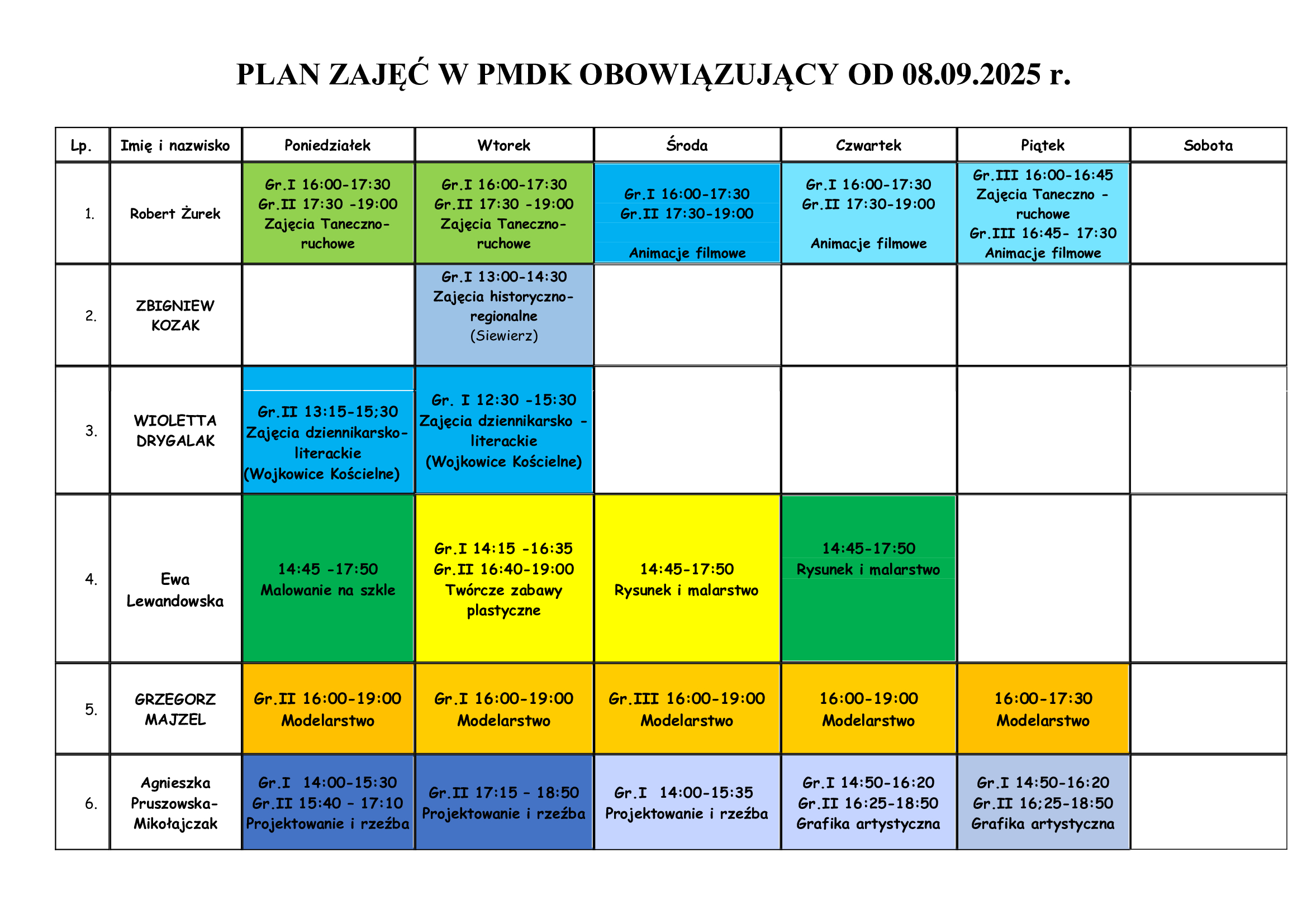 PLAN ZAJĘĆ OBOWIĄZUJĄCY OD 01.09.2025 r.